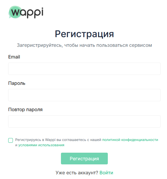 Для регистрации вам нужно ввести адрес своей электронной почты и пароль.