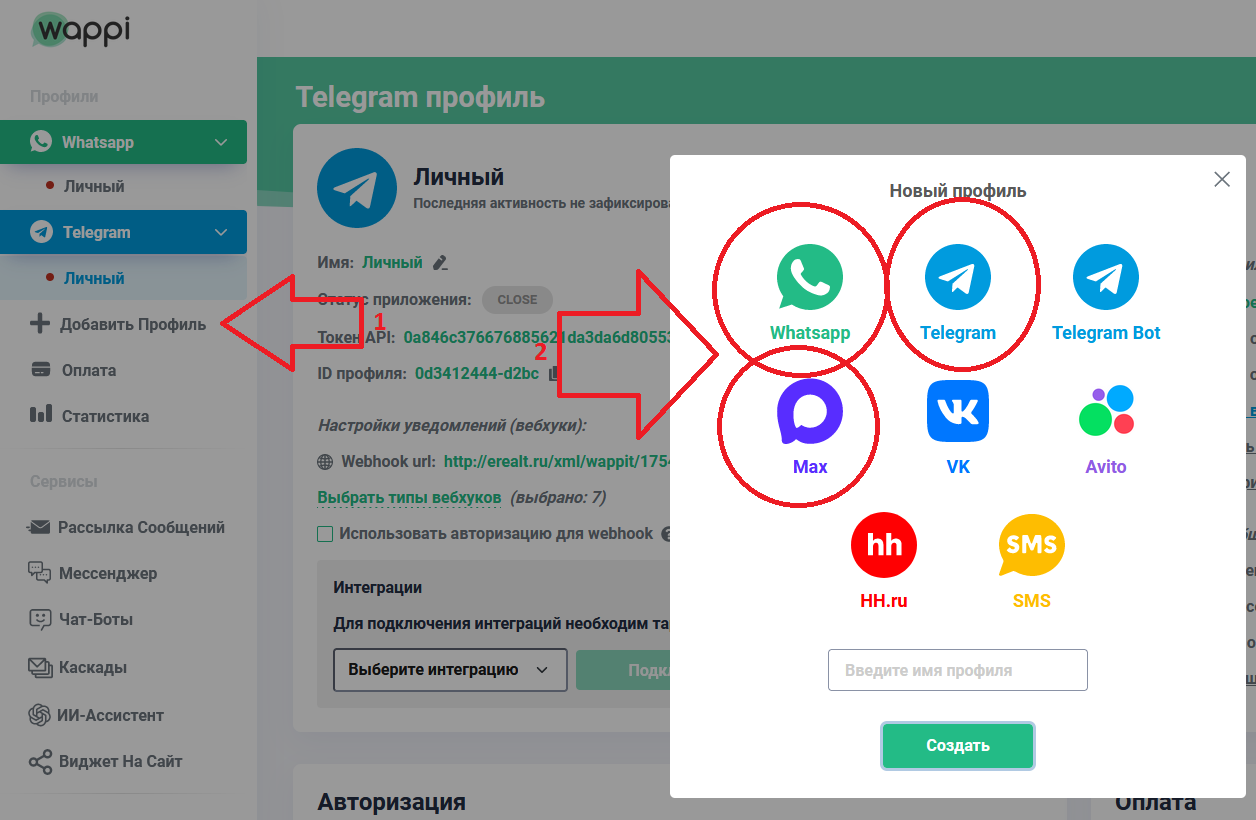 Интеграция с WhatsApp, Telegram и мессенджером Max